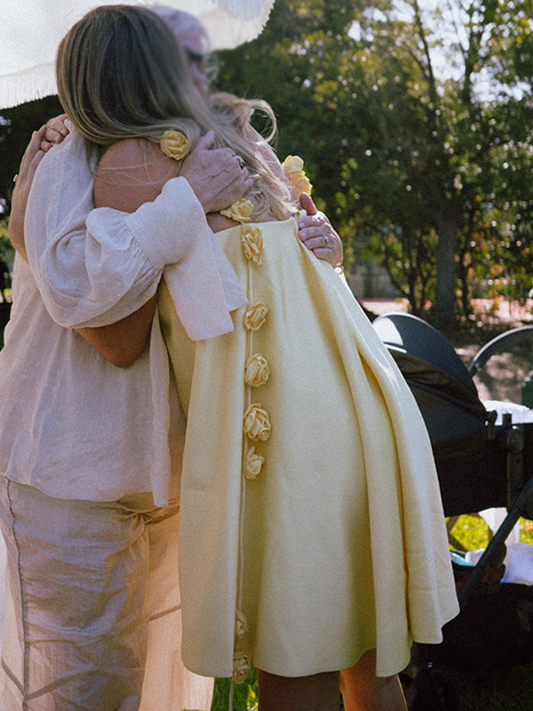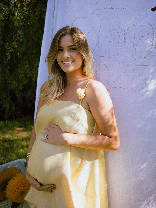 fotobeyou Yellow 3D Flowers Cami Backless A-line Elegant Maternity Baby Shower Mini Dress