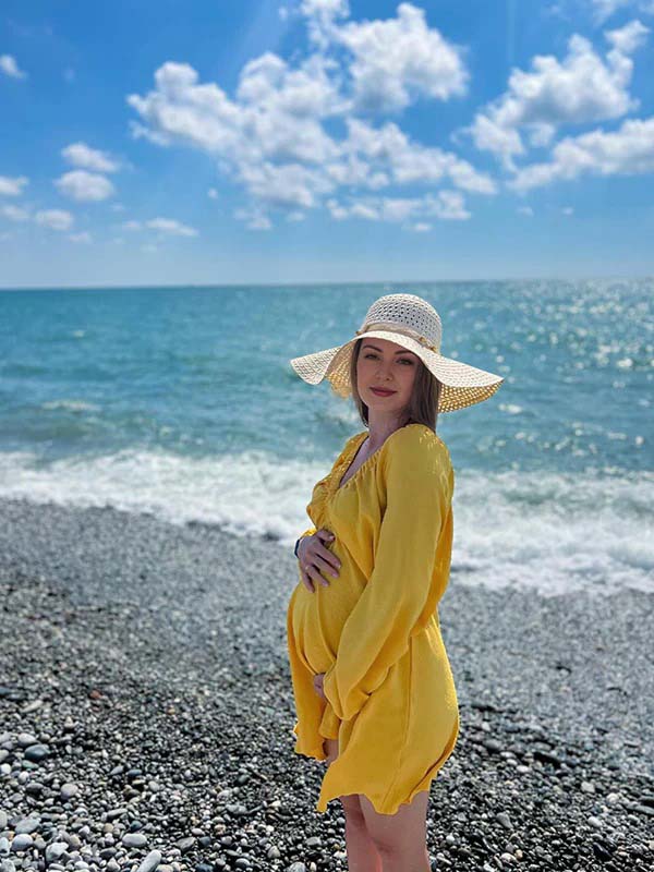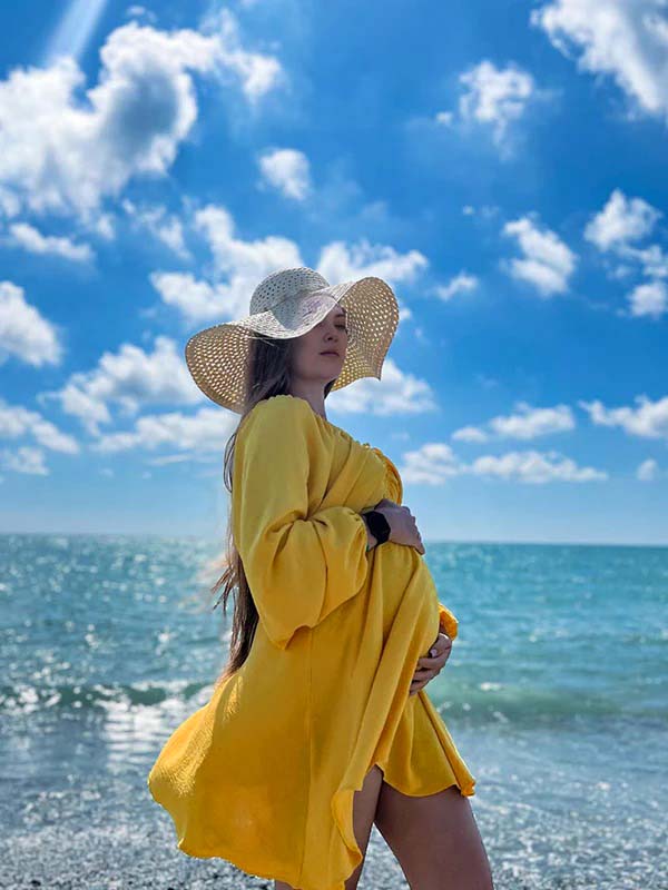 fotobeyou Yellow V neck Puff Sleeve Daily Beach Maternity Photoshoot Mini Dress