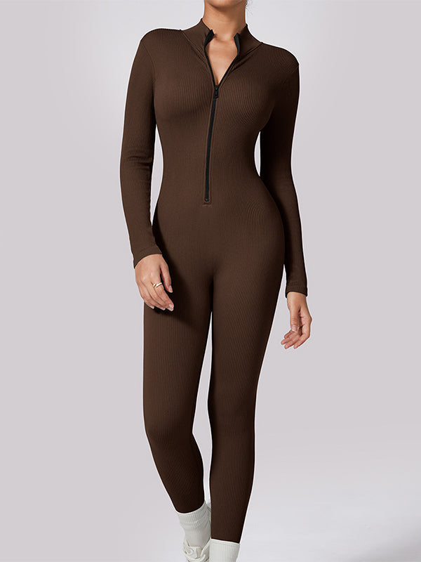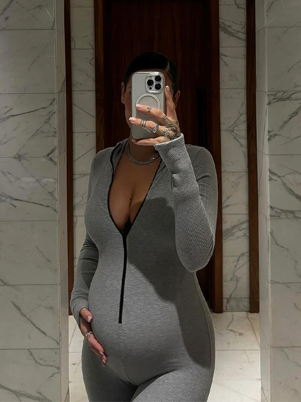 fotobeyou Zipper Solid Color Bodycon Daily Casual Yoga Sport Exercise Maternity Jumpsuit