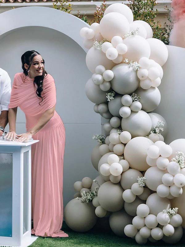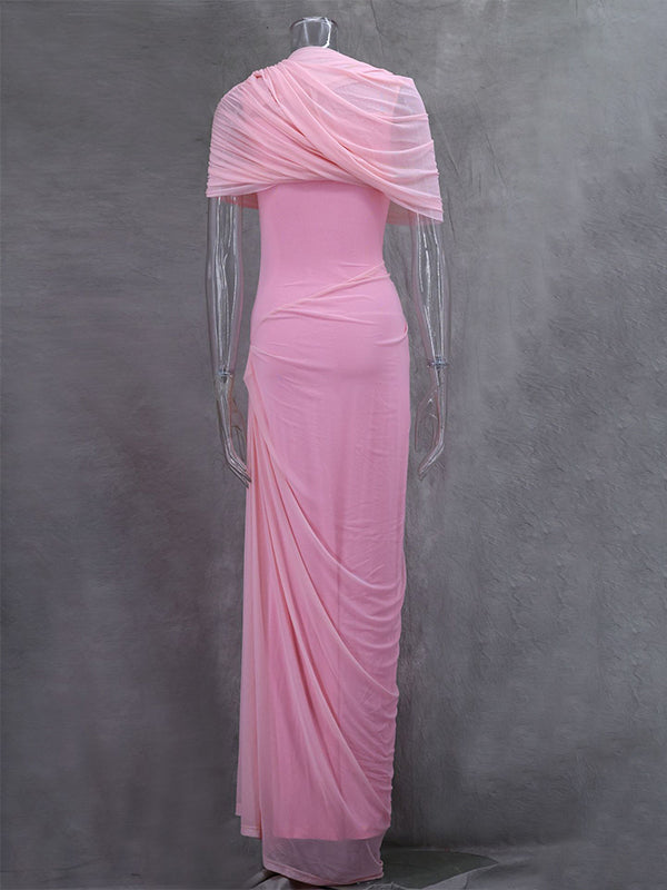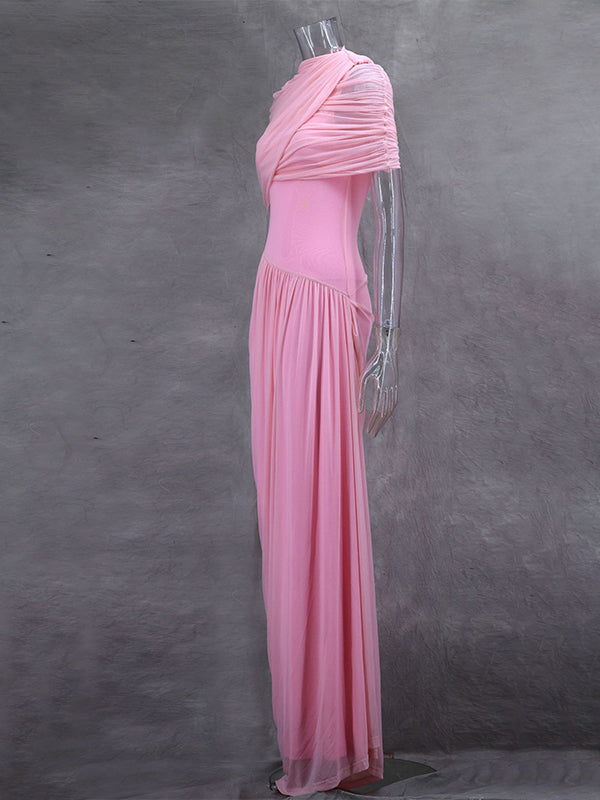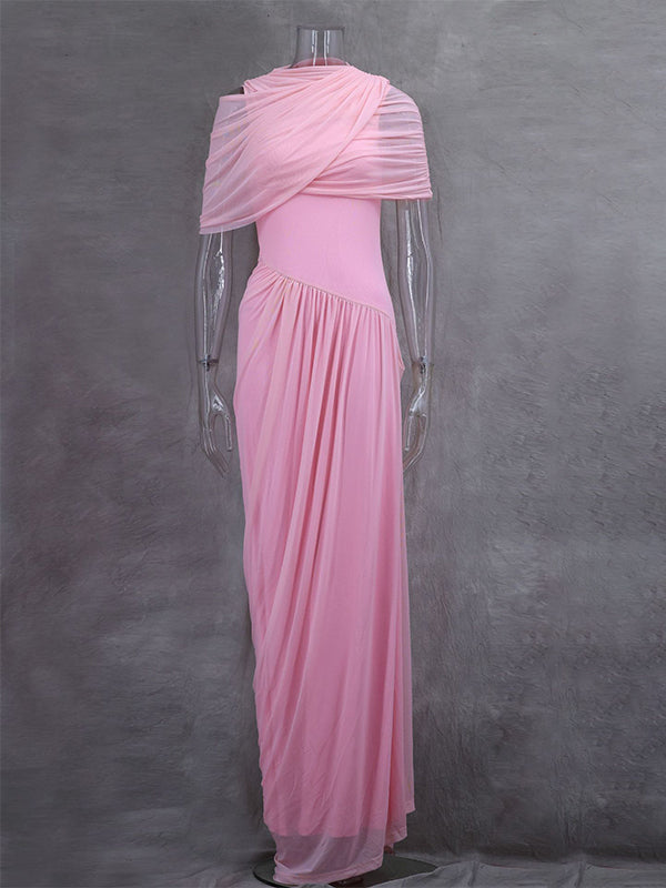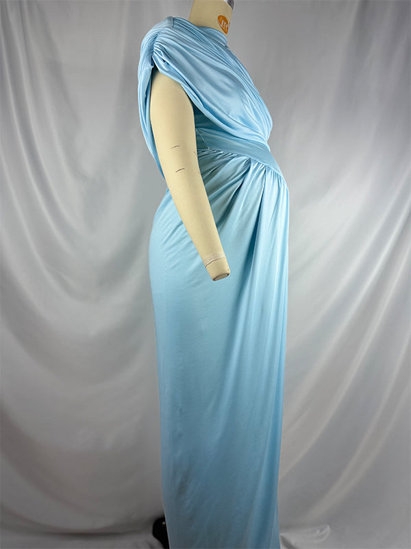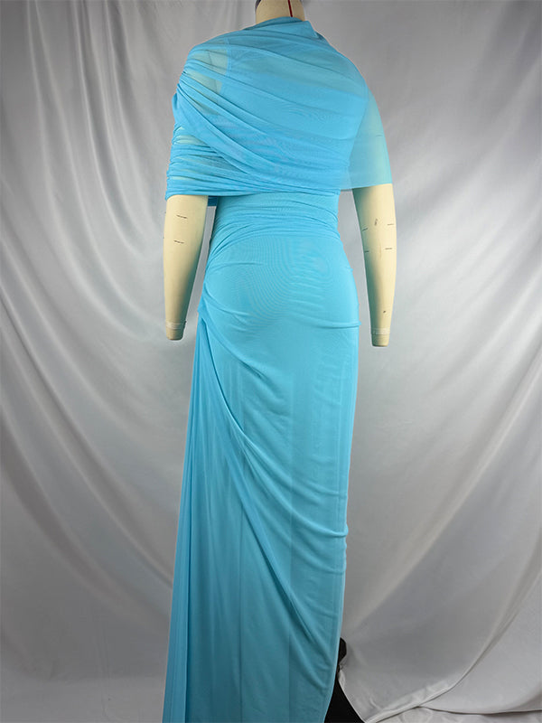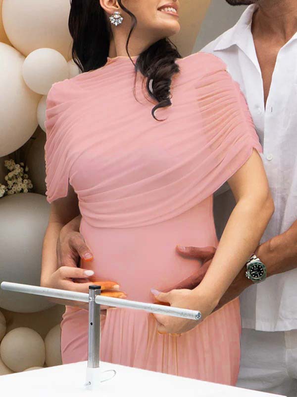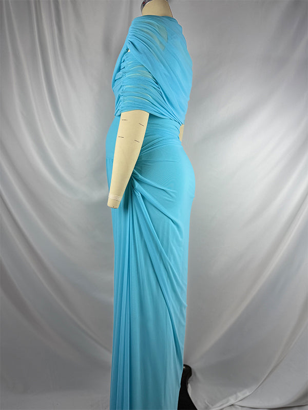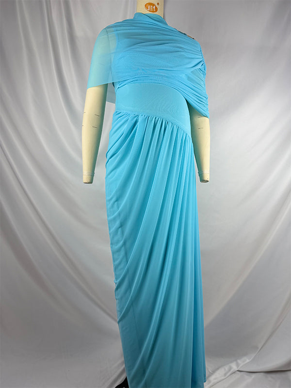 Light Blue Ruched Irregular Neck Baby Shower Maternity Maxi Dress