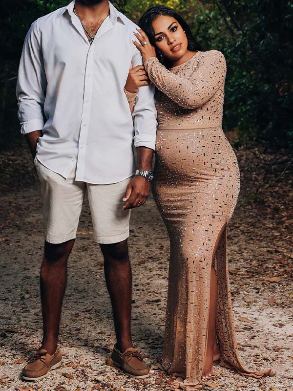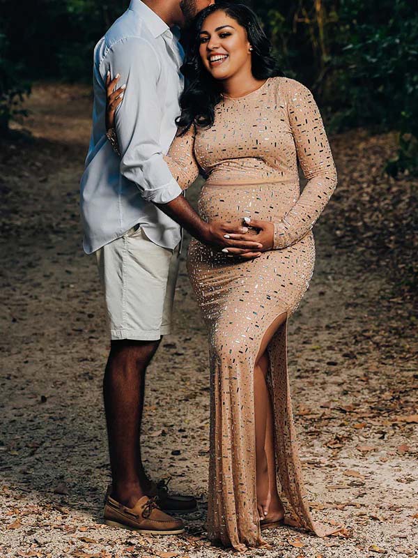 Naked Diamond Rinestone Side Slit Photoshoot Maternity Maxi Dress