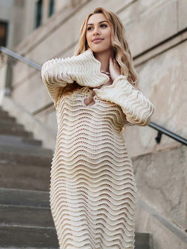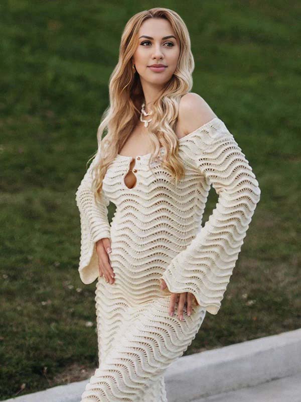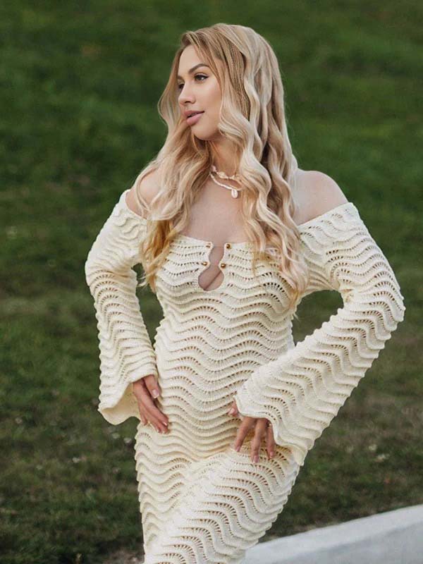 Decoration: Crochet, ruffle, cut out, backless, knitted, bodycon, mental buckle
