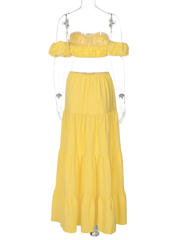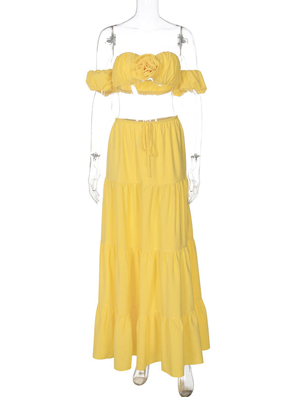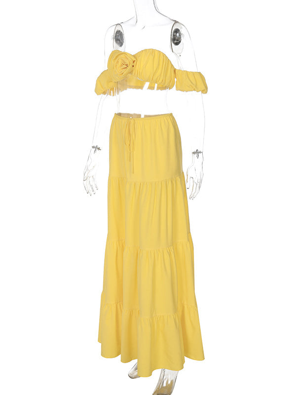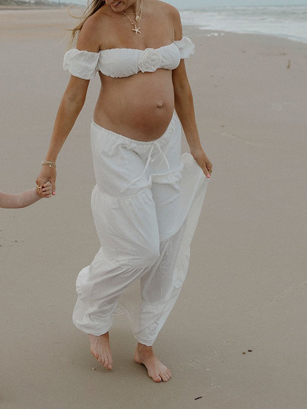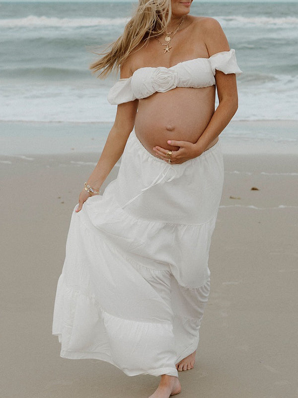 Off Shoulder Ruffle Crop 3D Flower 2-in-1 Maternity Photoshoot Maxi Dress