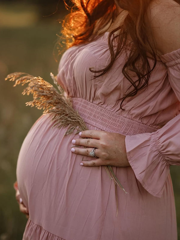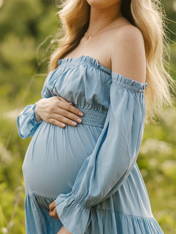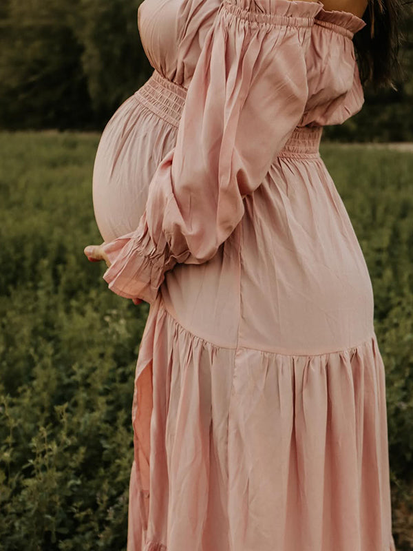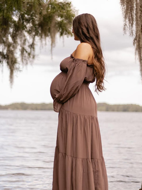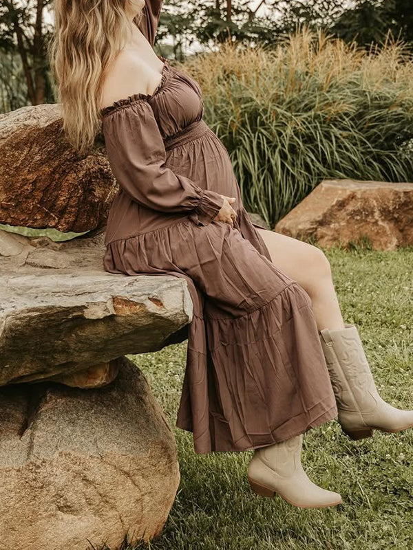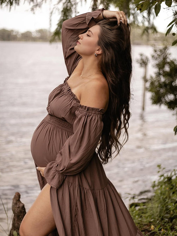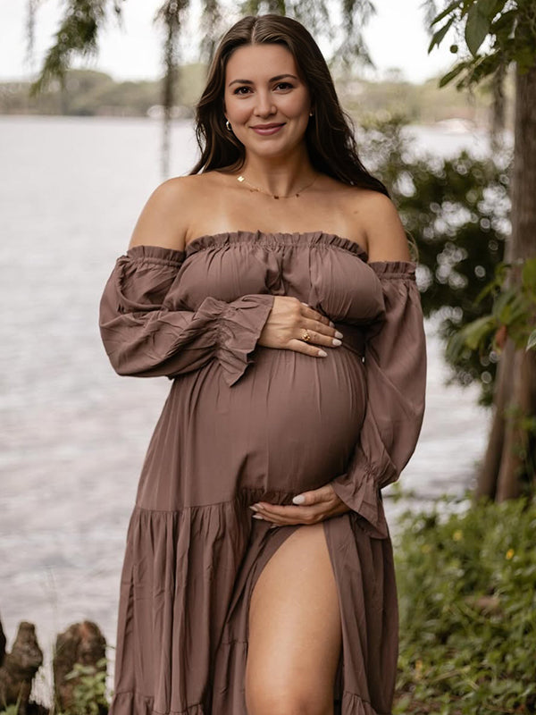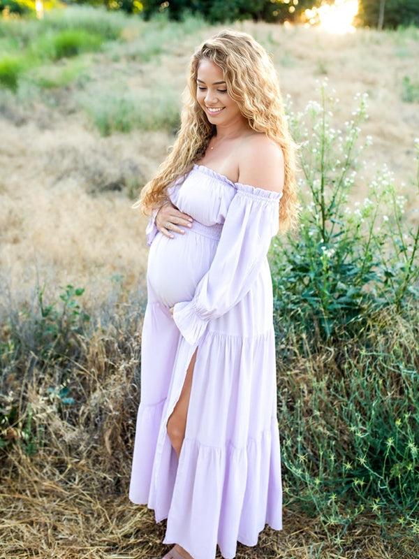 Off Shoulder Side Slit Big Swing Boho Maternity Photoshoot Maxi Dress