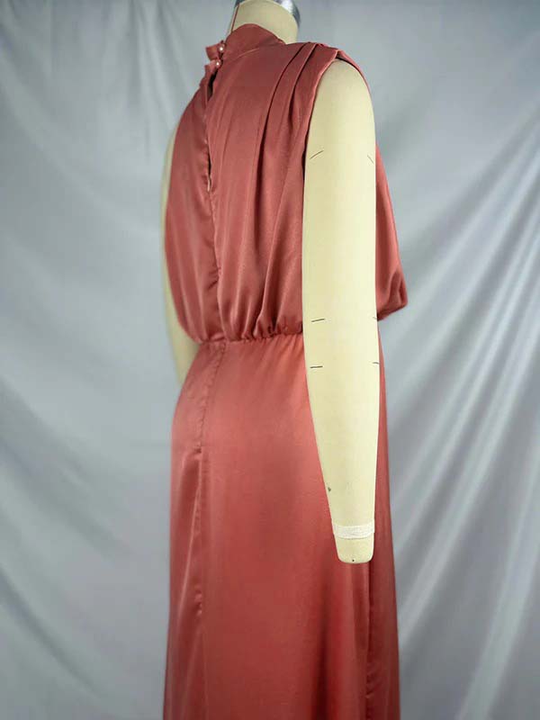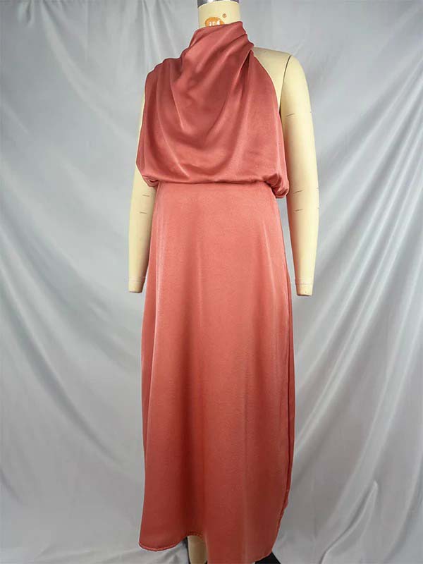 Pink Satin Asymmetric Shoulder Elegant Maternity Photoshoot Maxi Dress