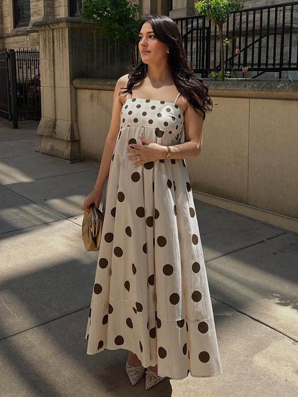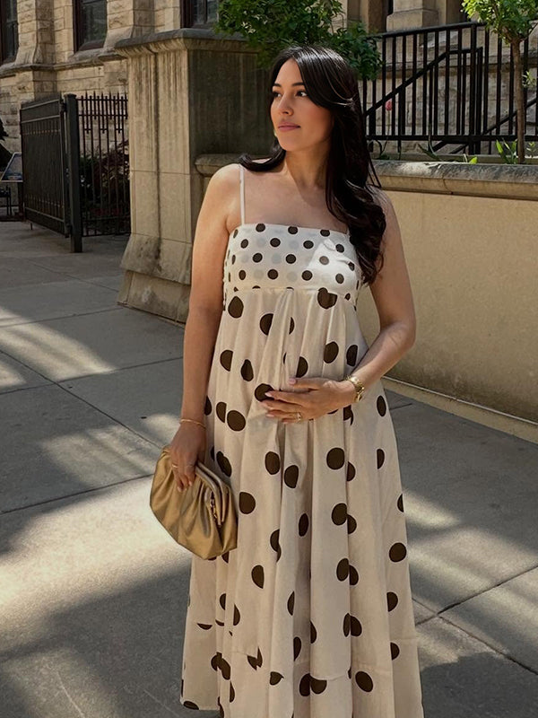 Polka Dot Cami Big Swing Maternity Baby Moon Maxi Dress