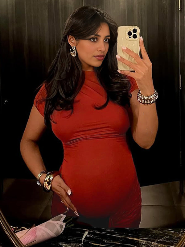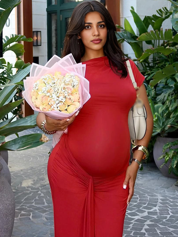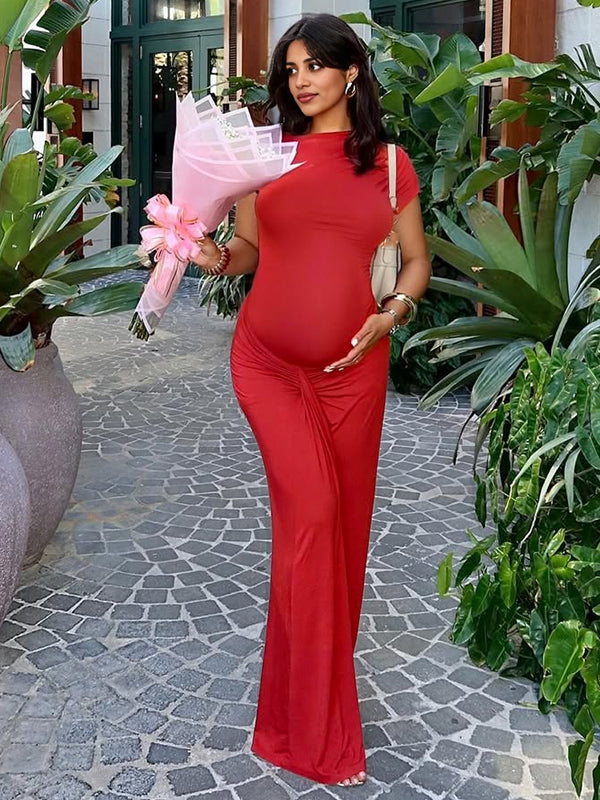 Red Ruched Draped Chic Maternity Going Out Maxi Dress