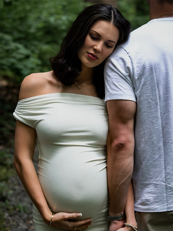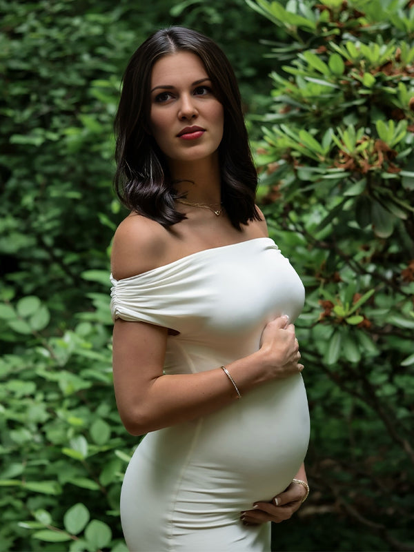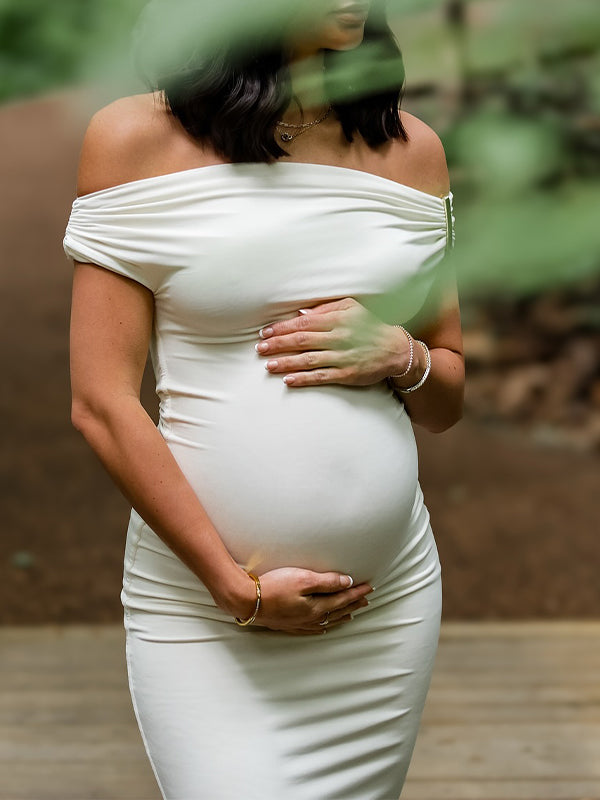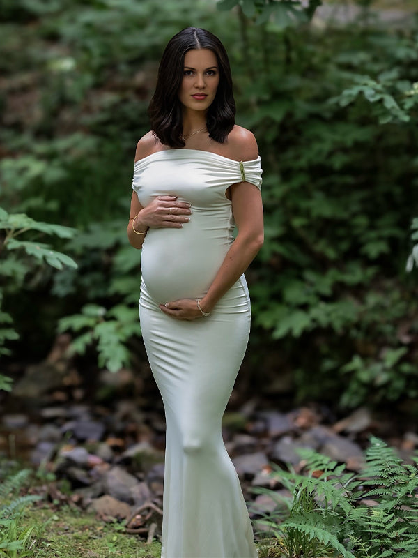 White Off Shoulder Buckle Mermaid Photoshoot Maternity Maxi Dress