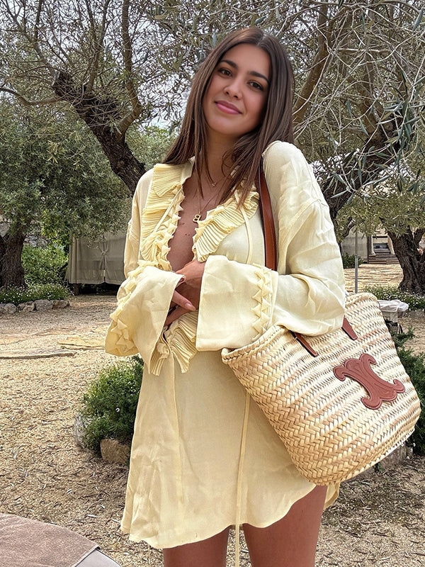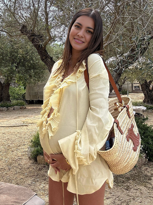 Yellow Falbala lace-up Gossip Pleat Maternity Photoshoot Blouse